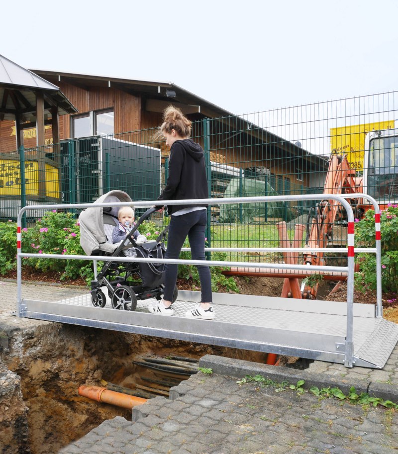 Für den sicheren Übergang über Gräben und Kanäle. Auch geeignet für Radfahrer, Rollstuhlfahrer und Blinde.